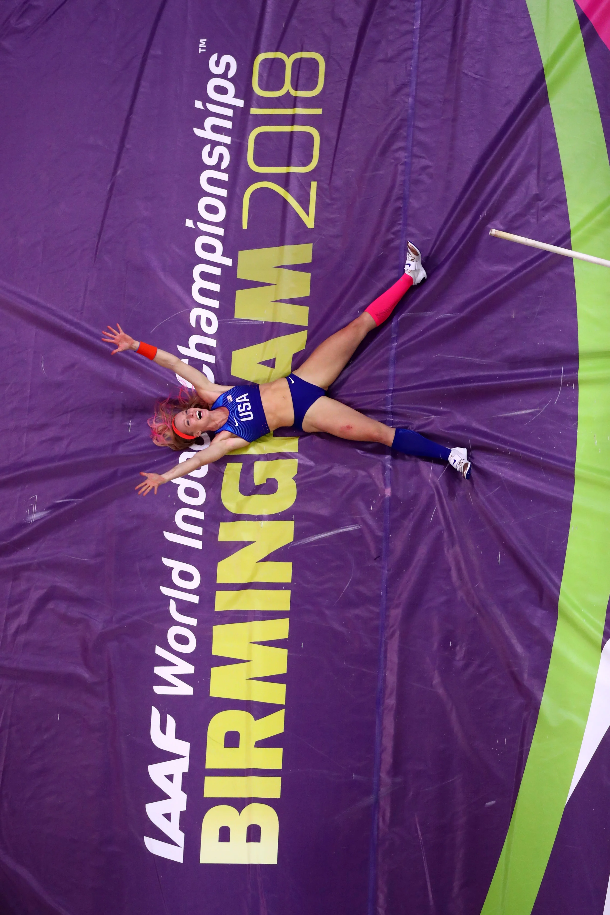 -- The American pole vaulter Sandi Morris had won silver at the 2016 Portland world indoors, at the 2016 Rio Olympics and again at London 2017. On Saturday, she won with a championship record and indoor personal best, 4.95m, or 16-2 3/4. She cleared 4.95 on a third try, and said, "Honestly, I am so proud of this moment and so proud of myself because to make the height that high on a third attempt under pressure is incredible. It was the competition of my life."
