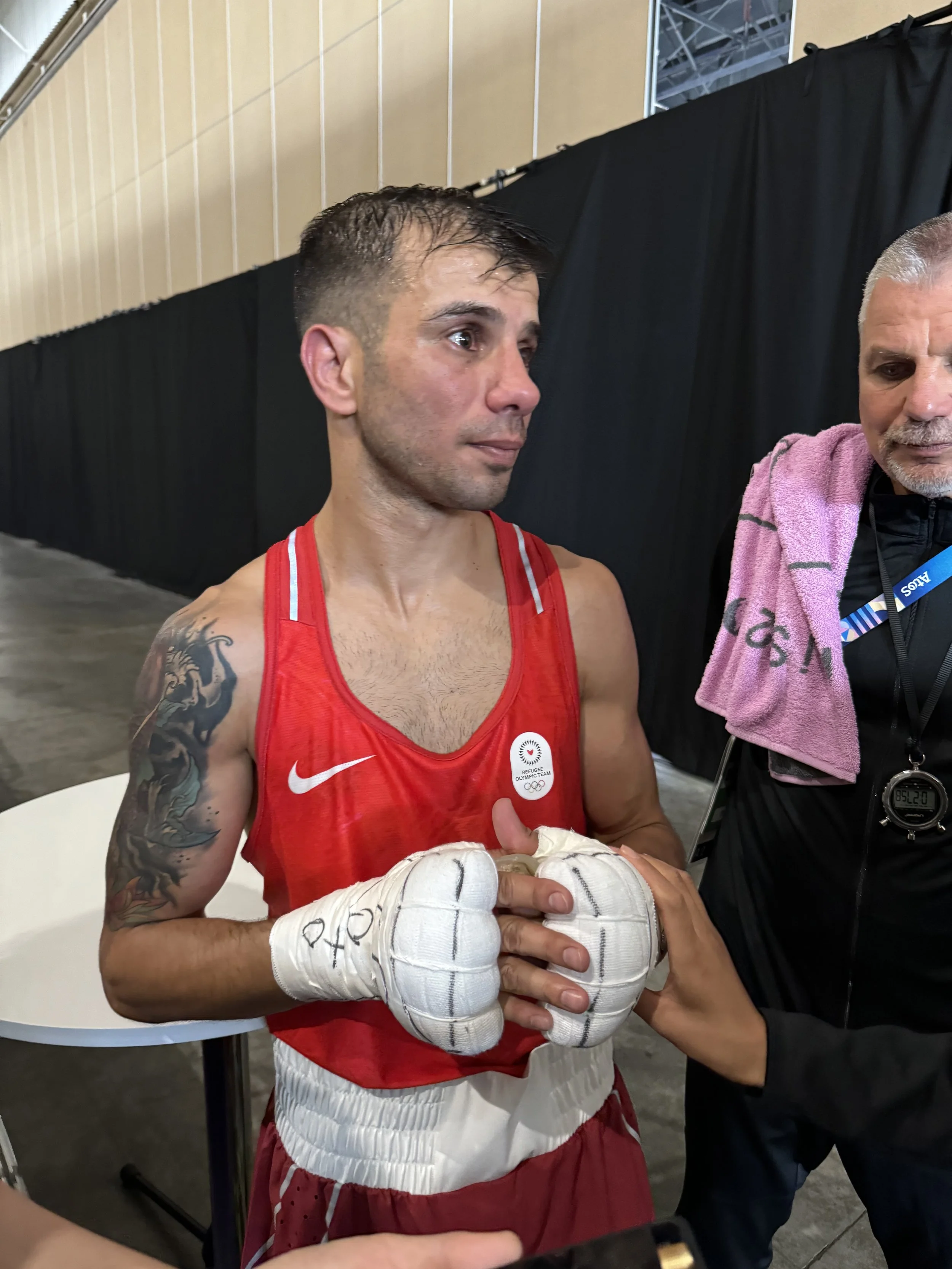 And here we were, the rain having finally cleared outside, the stands maybe half full, perhaps 25 reporters from around the world here inside Arena Paris Nord, to take in this first-round men’s under 51-kilogram fight.