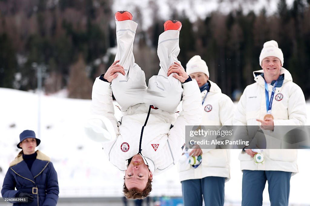 Ogden throwing a backflip at the medals stand // Getty Images / Alex Pantling