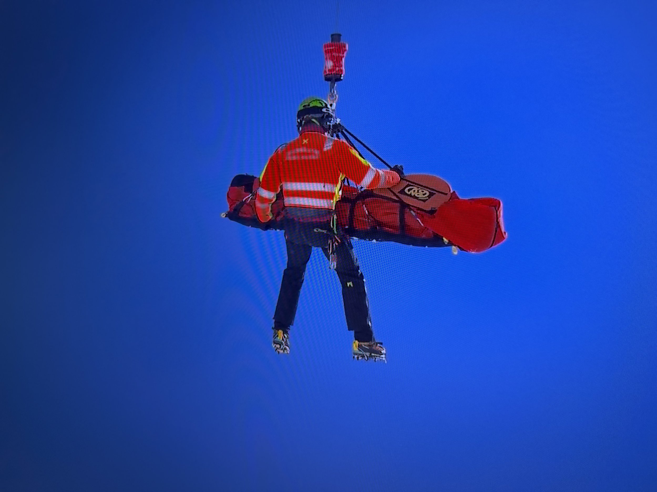 Lindsey Vonn being airlifted off the mountain above Cortina // OBS screengrab